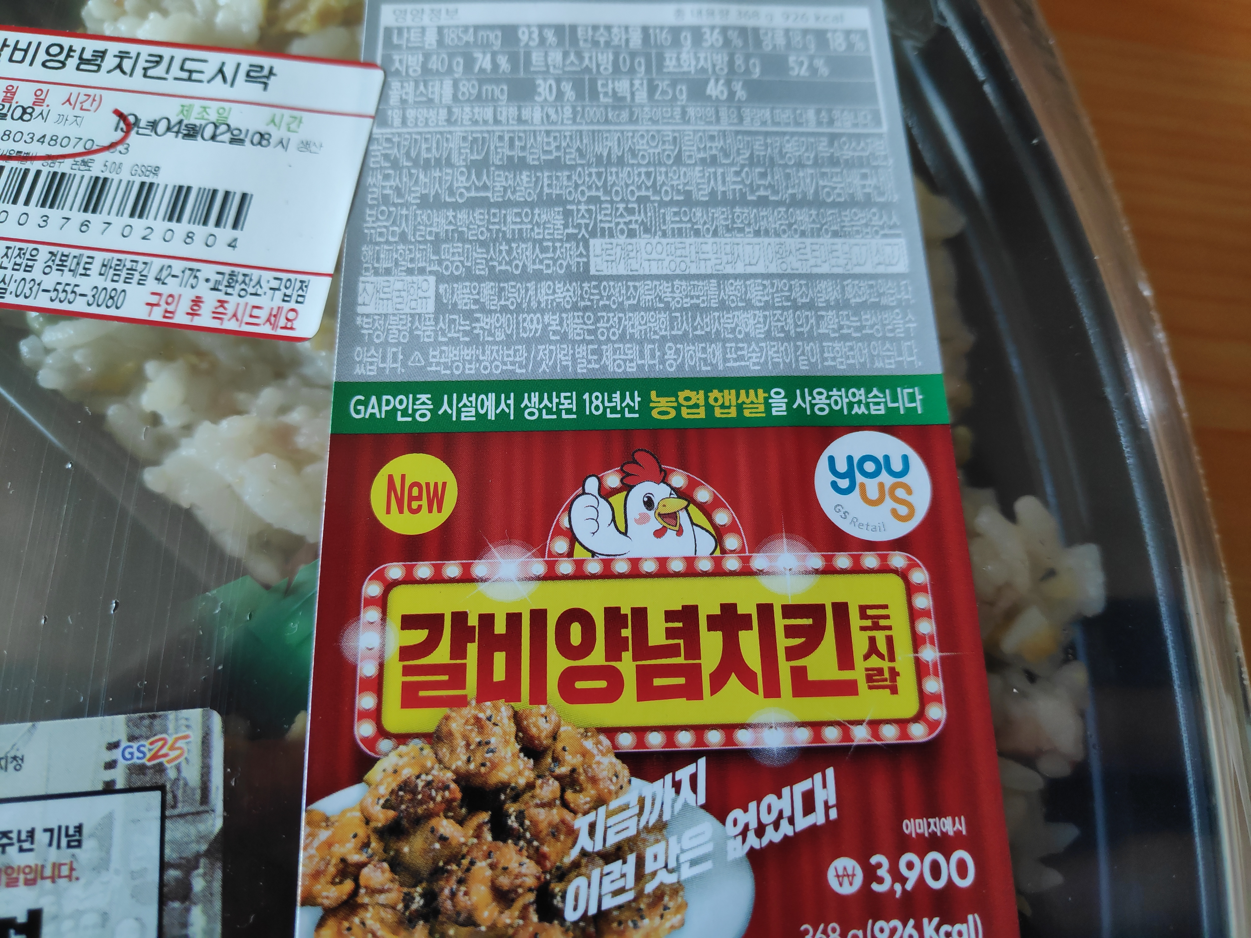 GS25 편의점에서 구입한 갈비 양념 치킨 도시락입니다.