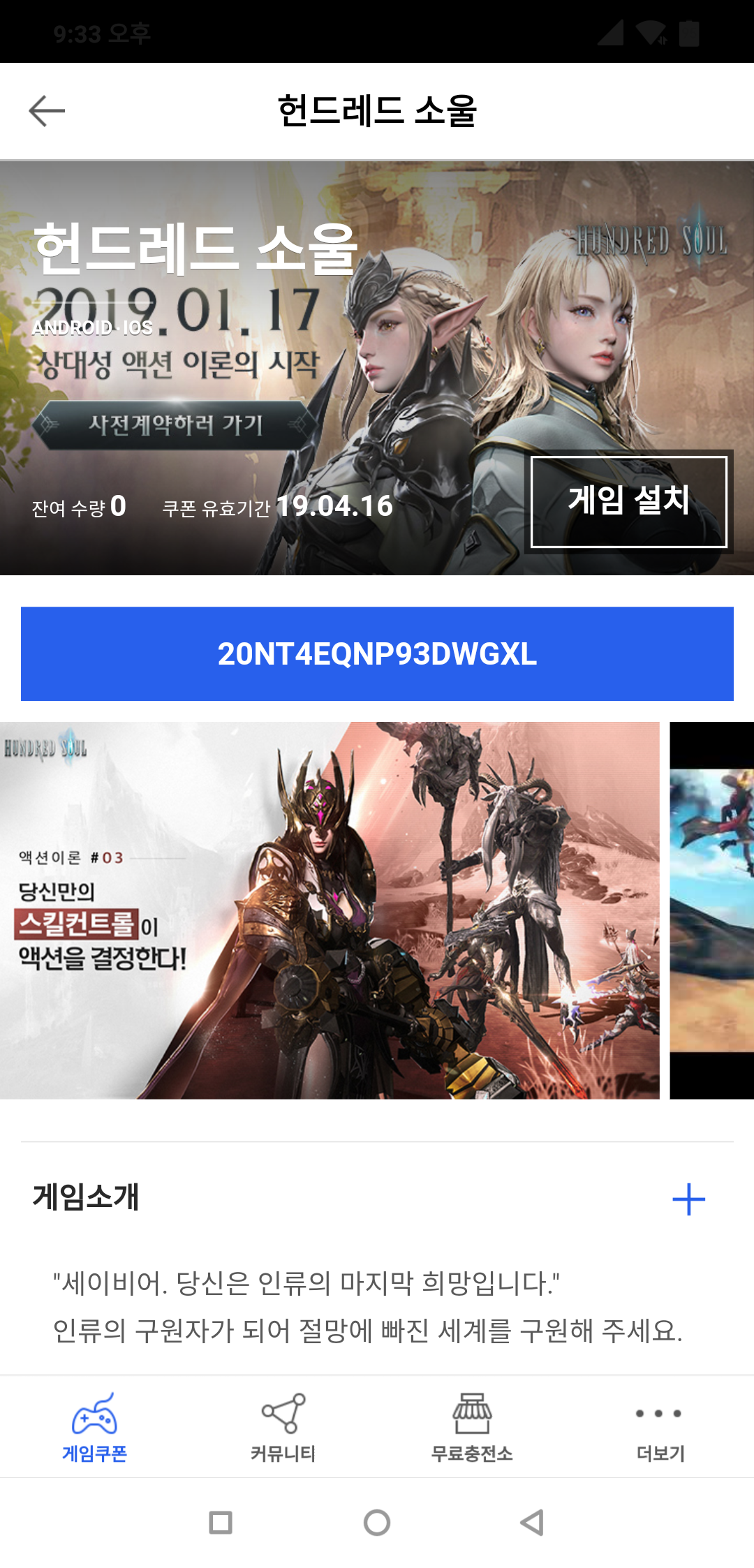 헌드레드 소울 사전등록쿠폰 드립니다.
