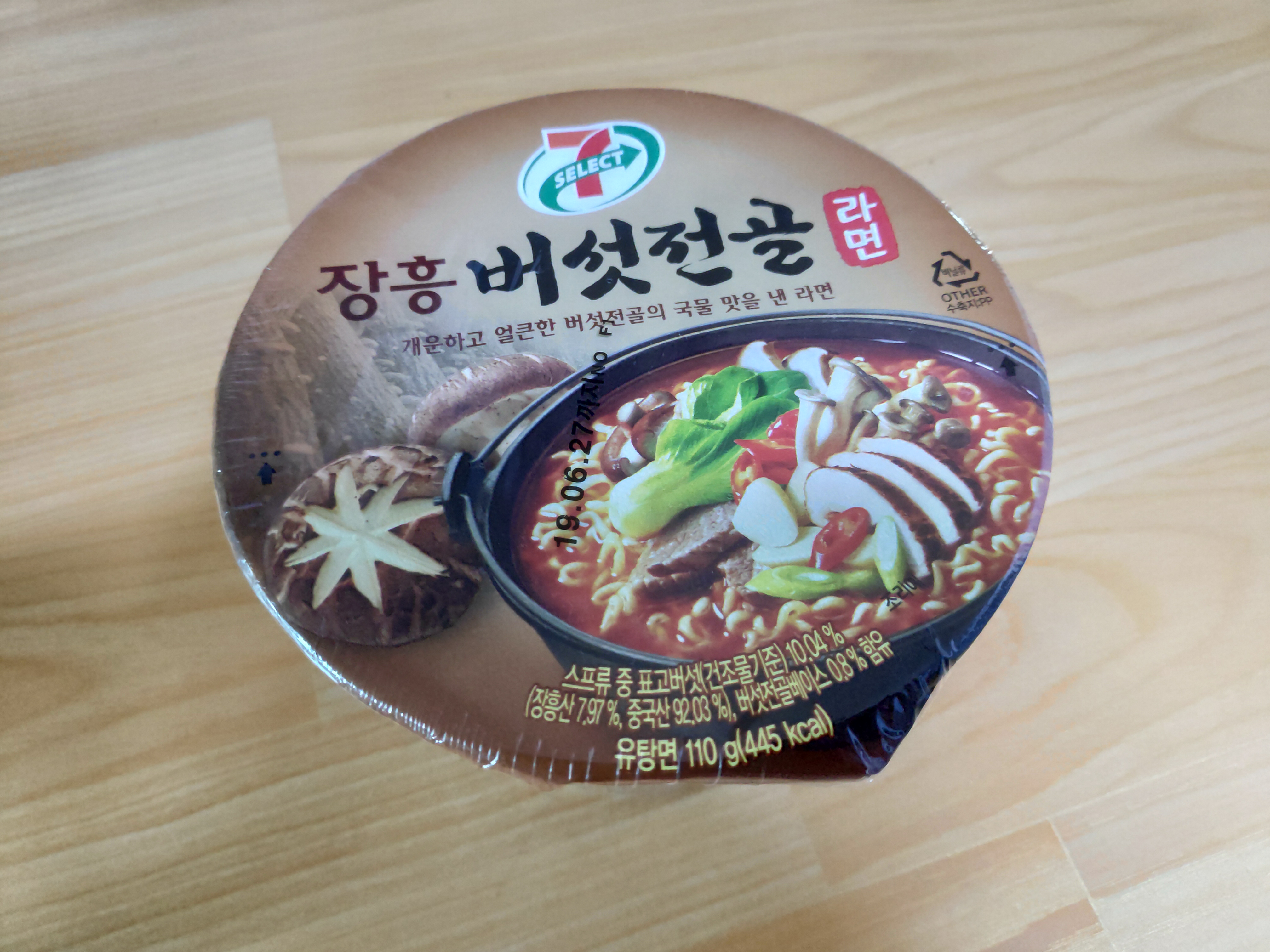 세븐일레븐 편의점에서 구입한 장흥 버섯전골 컵라면입니다.