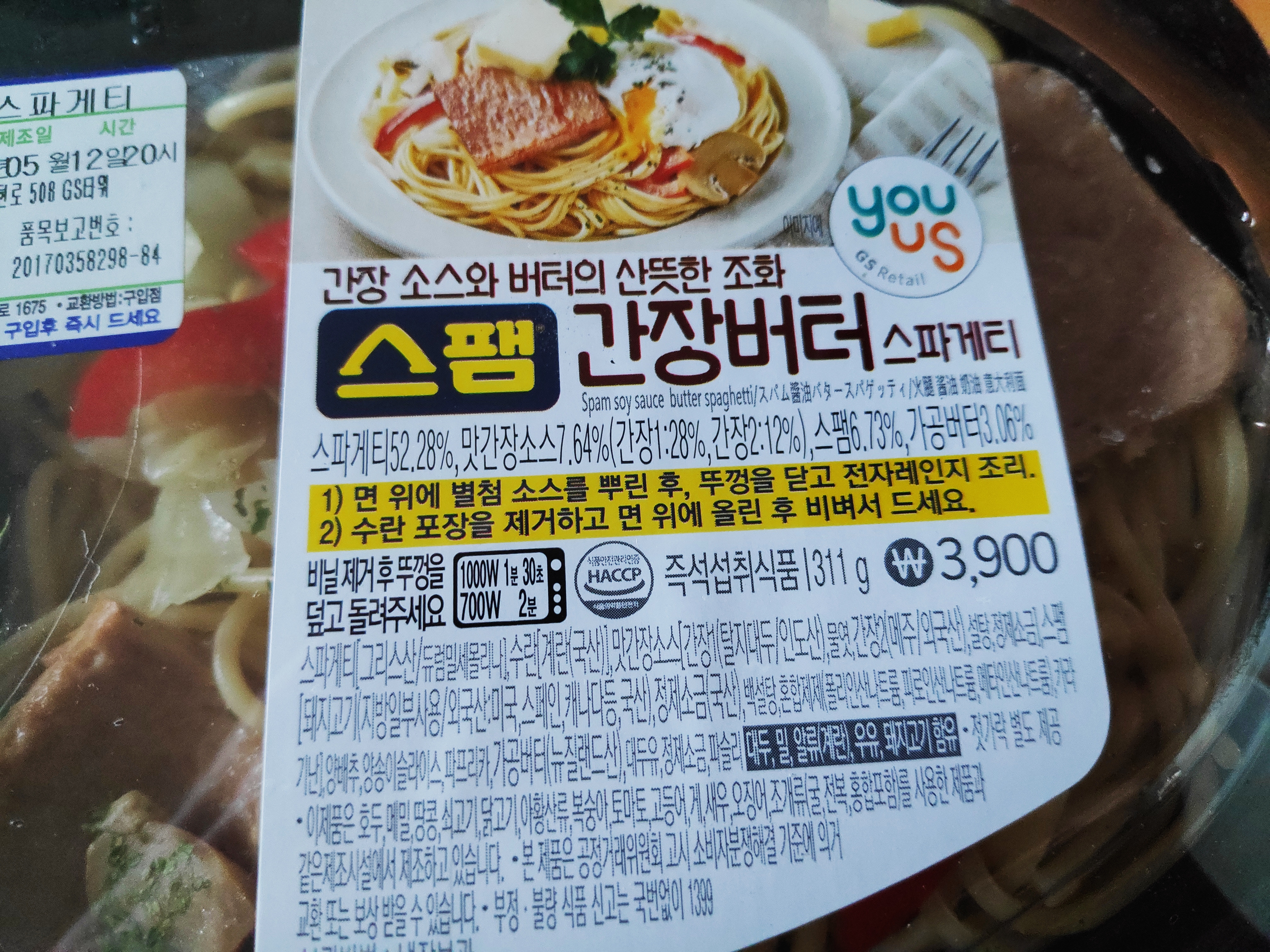 GS25 편의점 스팸 간장버터 스파게티 가격 및 후기