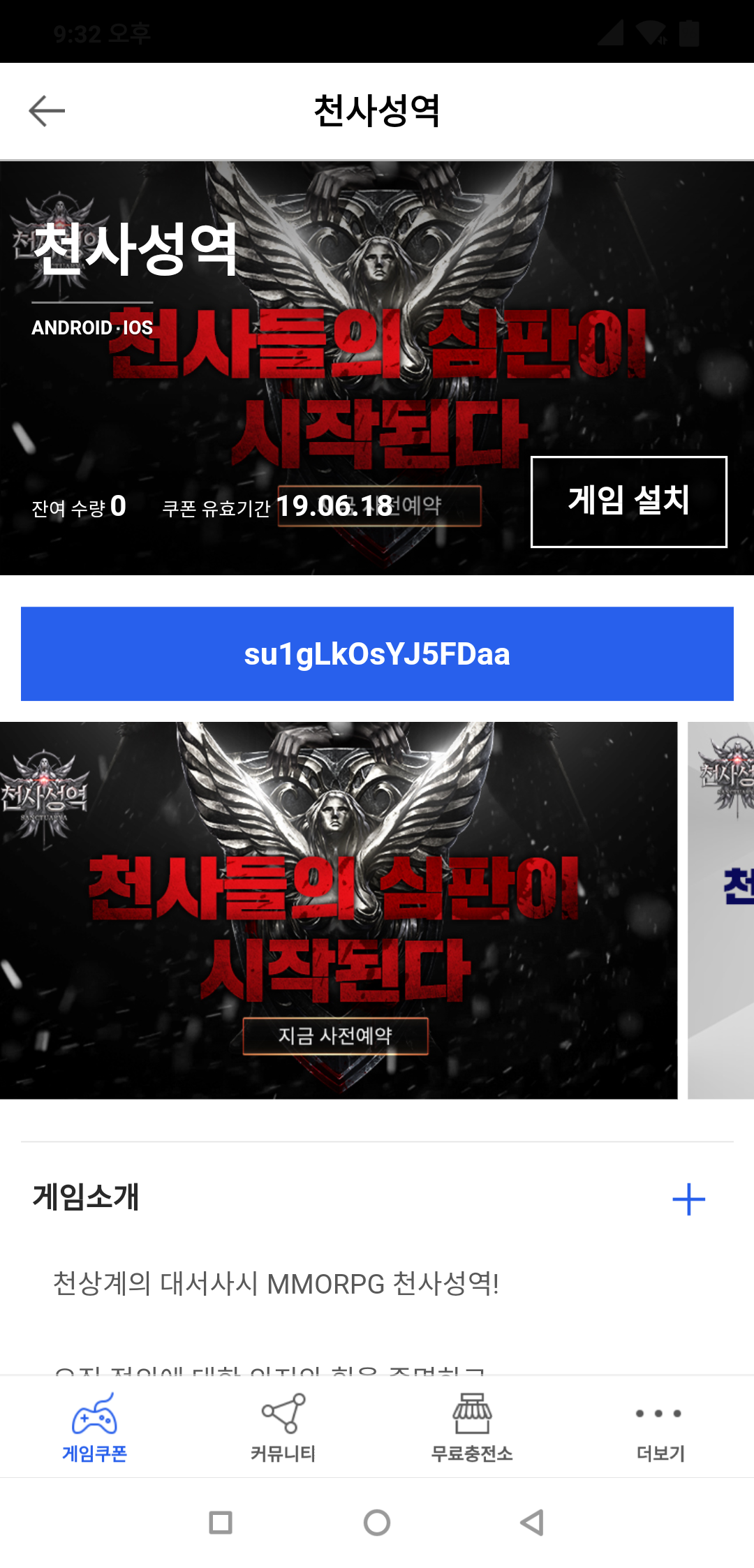 천사성역 사전등록쿠폰 드립니다.