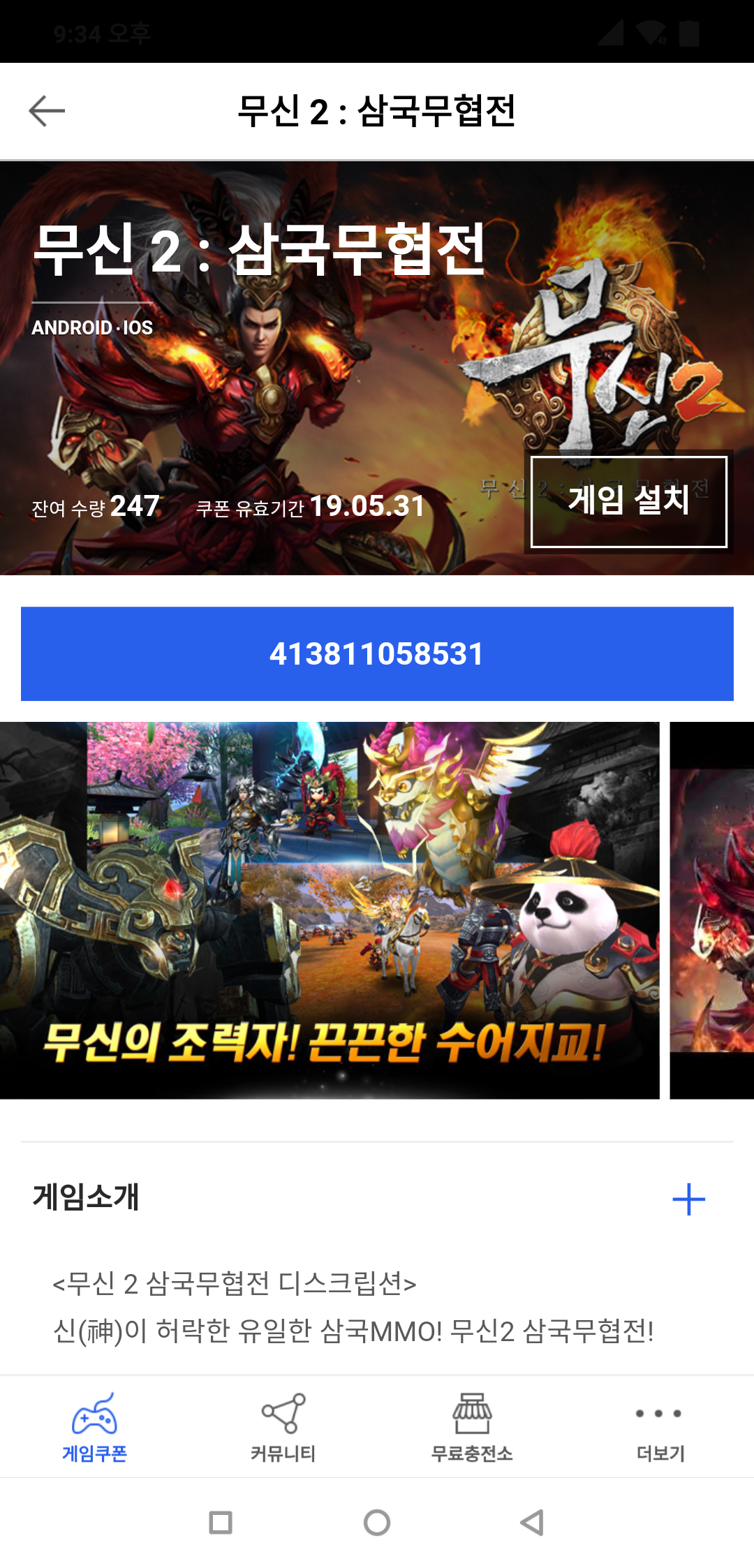 무신2 삼국무협전 사전등록쿠폰 드립니다.