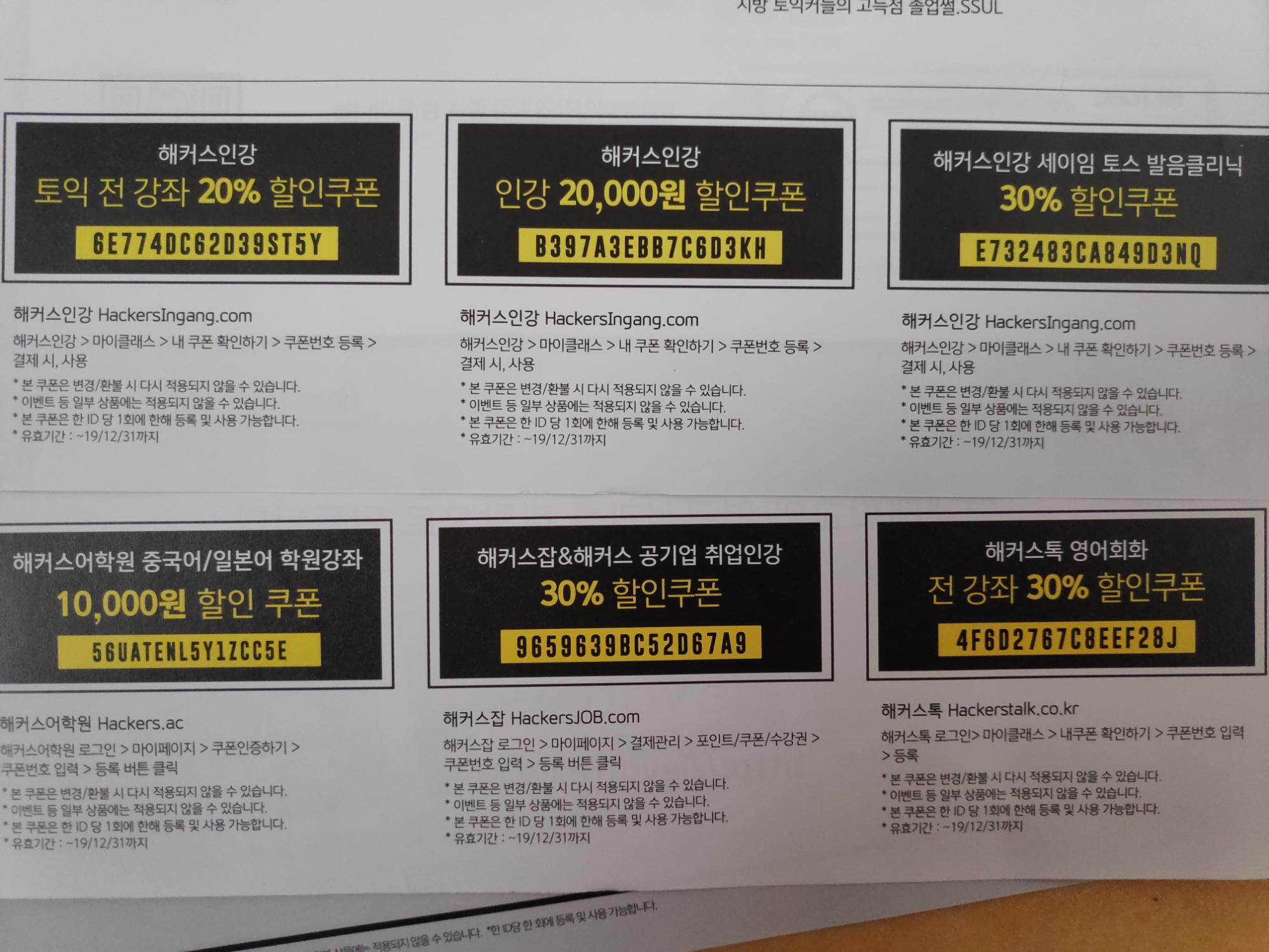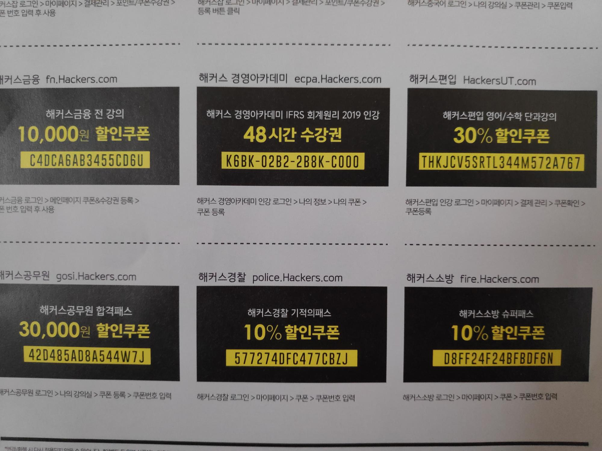 | 해커스 할인 쿠폰 드립니다. (0) | 2019.07.20 |
