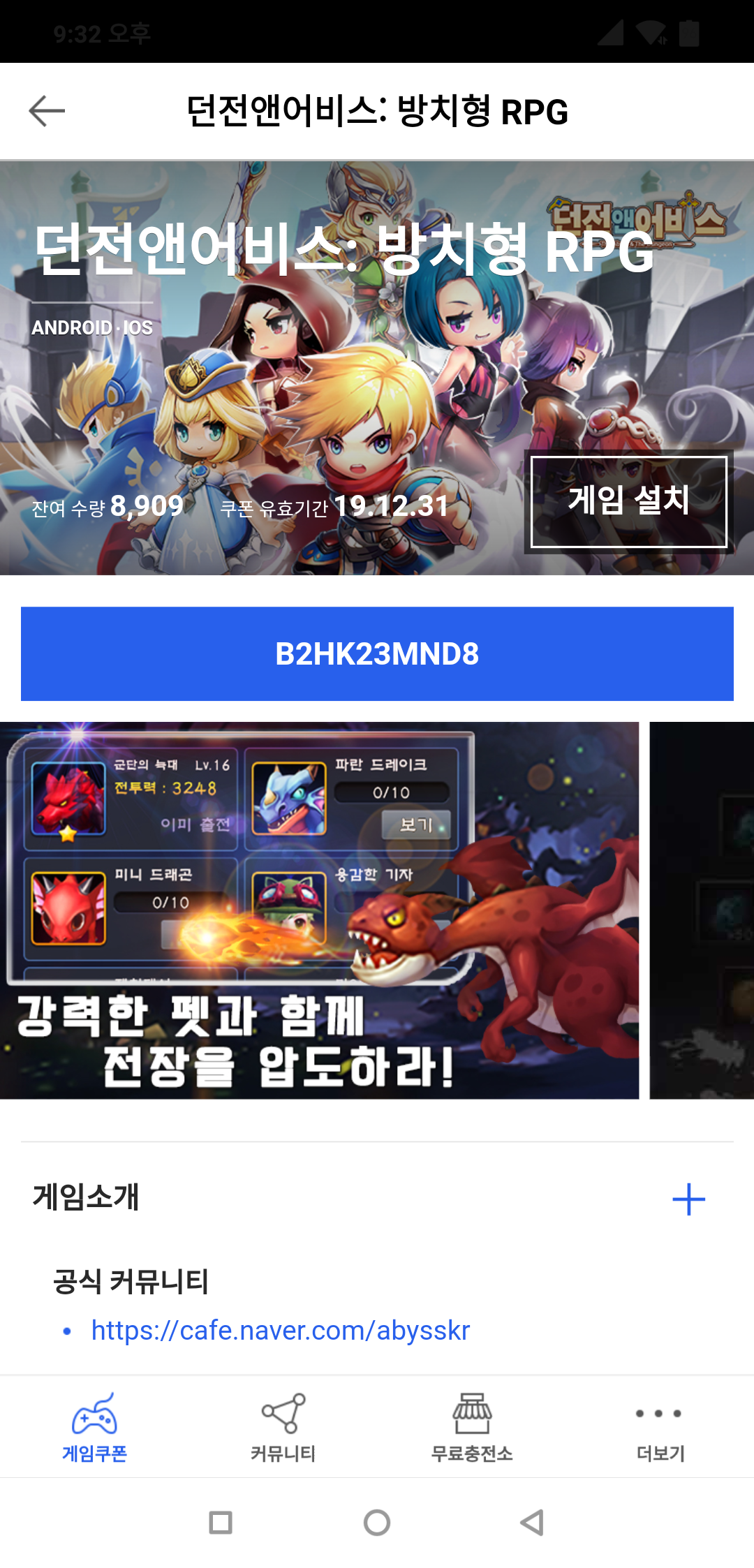 던전 앤 어비스 사전등록쿠폰 드립니다.