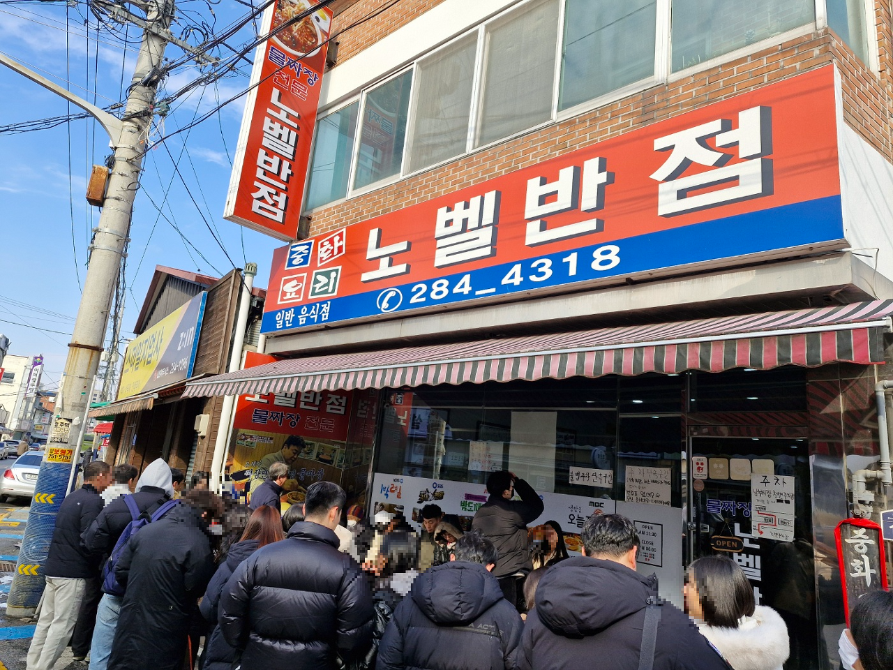 많은 사람들이 이미 물짜장을 먹으려고 기다리고 있었습니다.