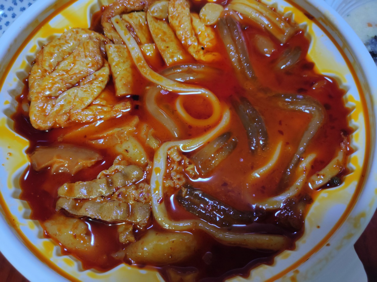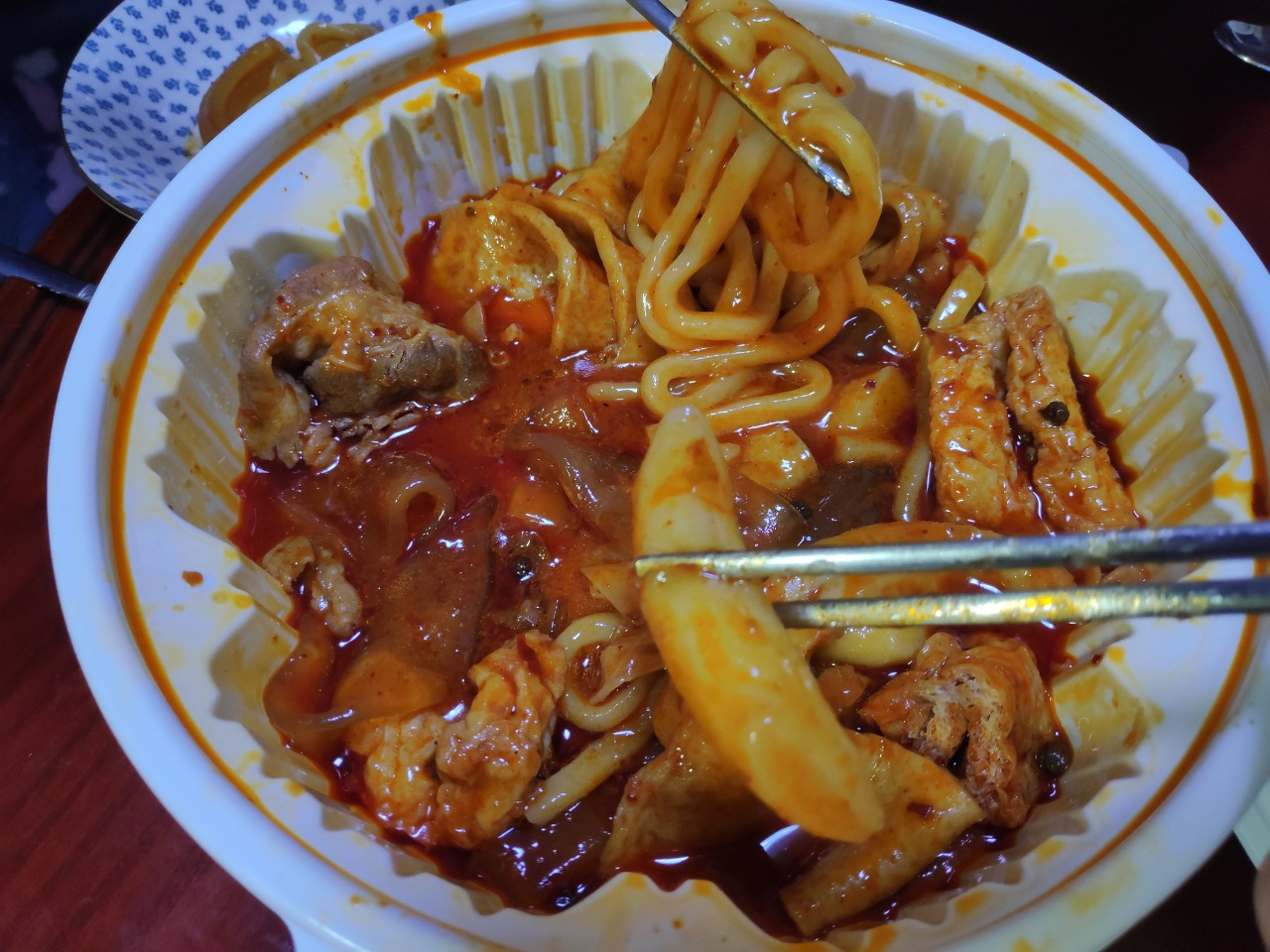 기존 마라떡볶이에 우삼겹과 분모자, 우동사리를 추가했어요.