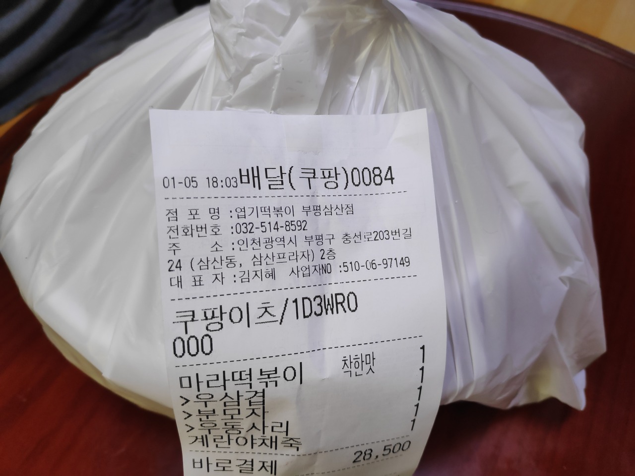 엄청 오랜만에 배달시켜 먹는 엽기떡볶이