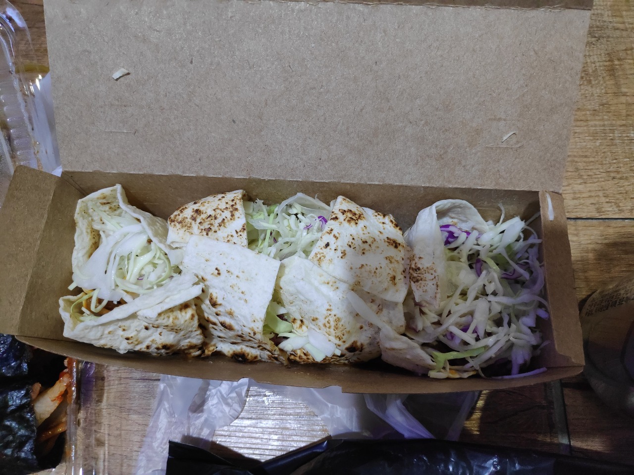 먹어봤는데 매콤한 고기에 토르티야가 어울려져서 맛이 좋았어요.