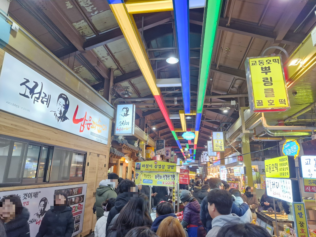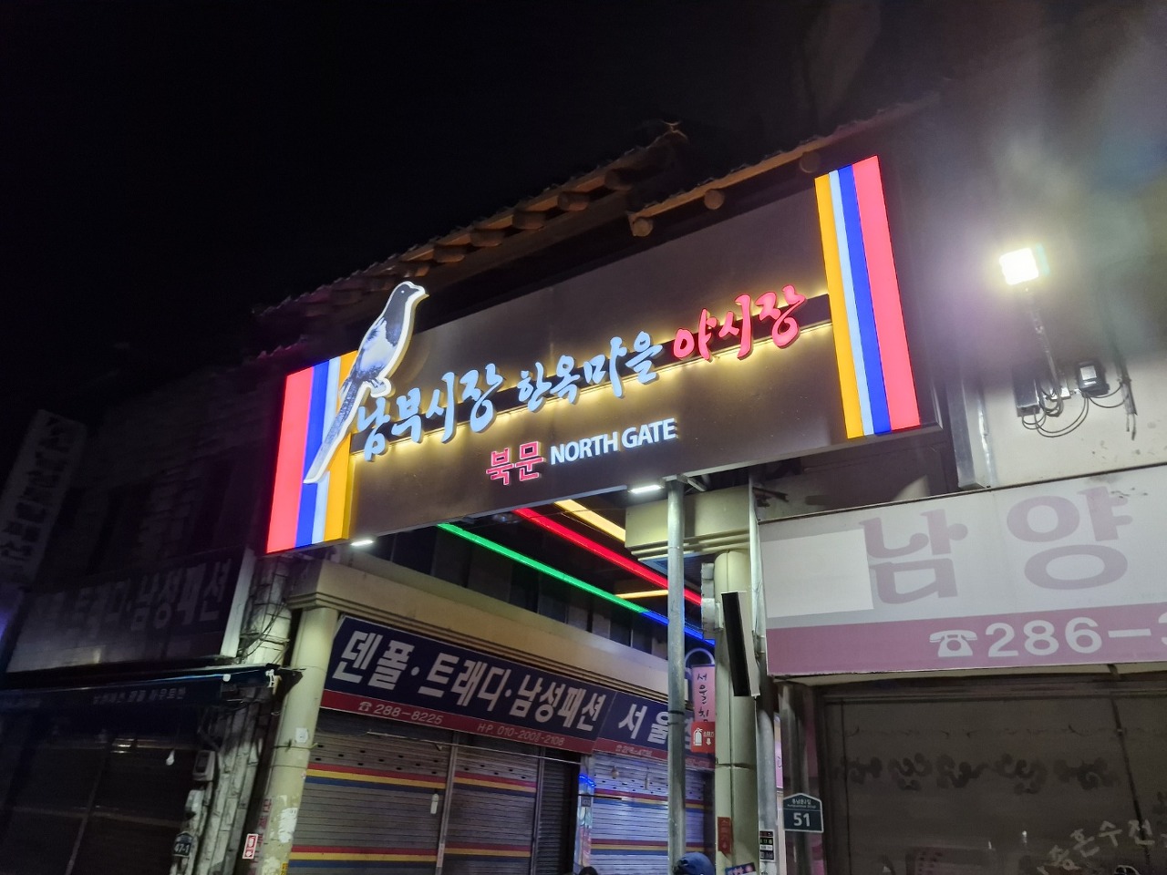 길을 걷다가 유명한 집, 조점례 남문피순대 집이 보이네요.