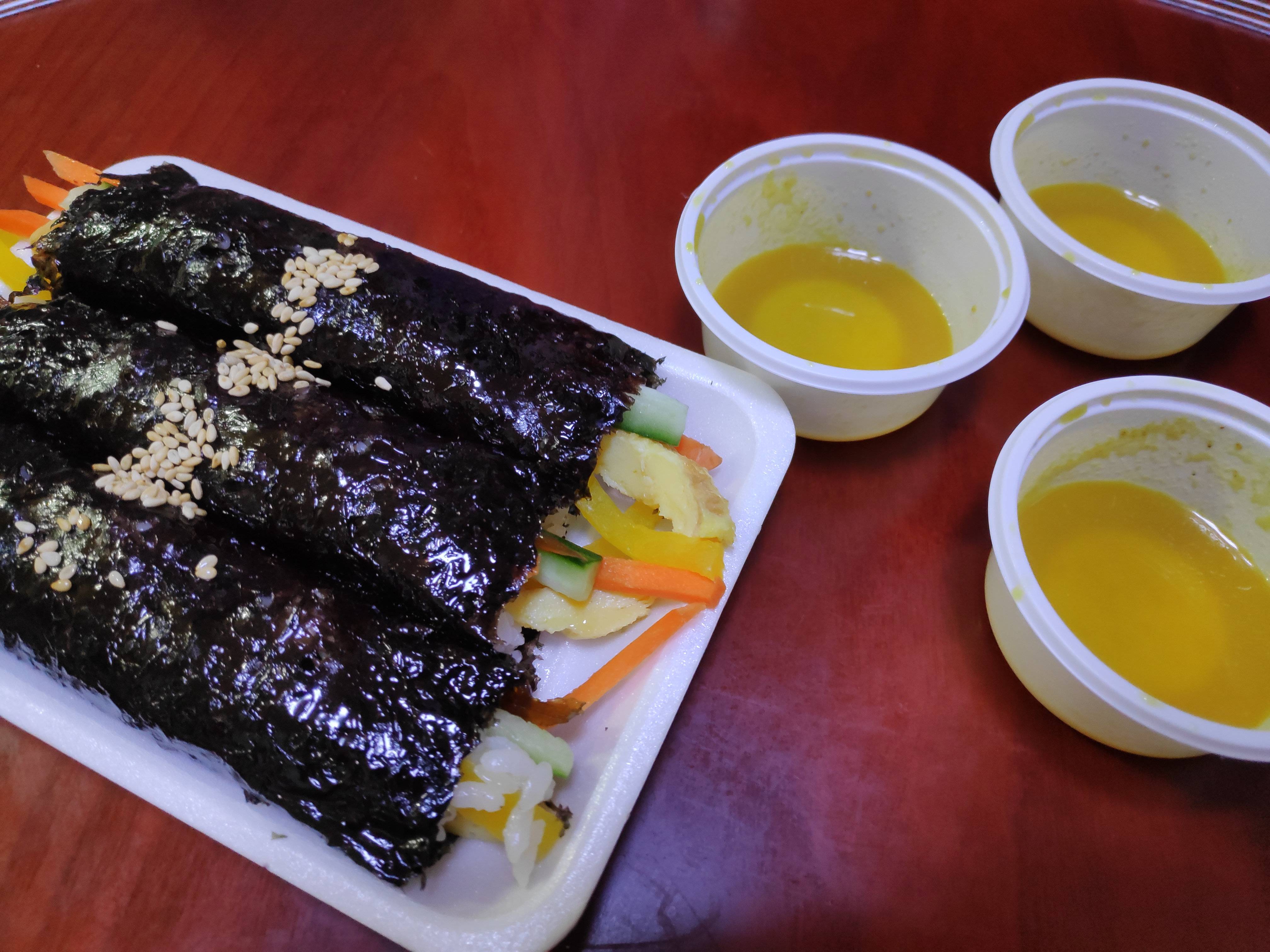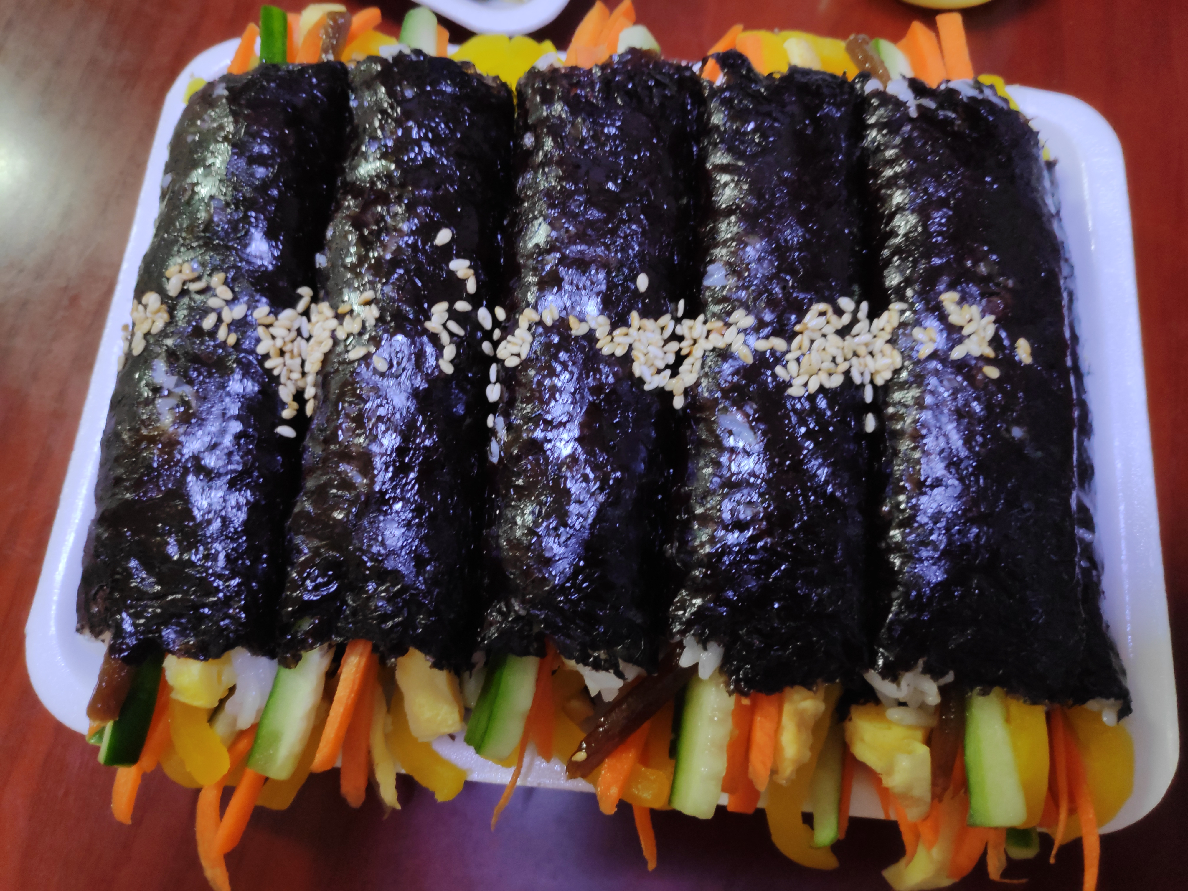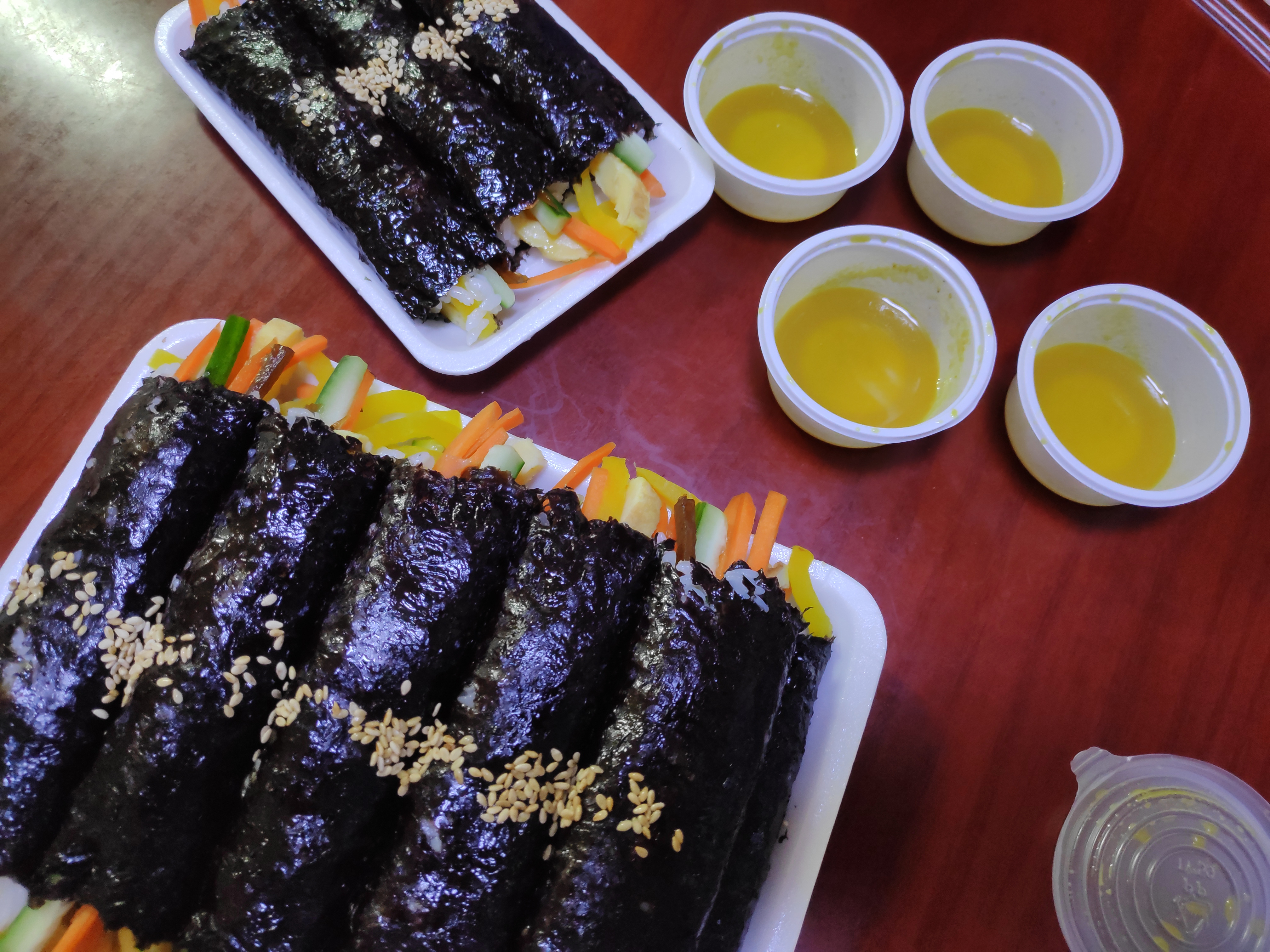 김밥을 소스에 찍어먹으면 엄청 잘 어울려서 맛이 더 좋아집니다.