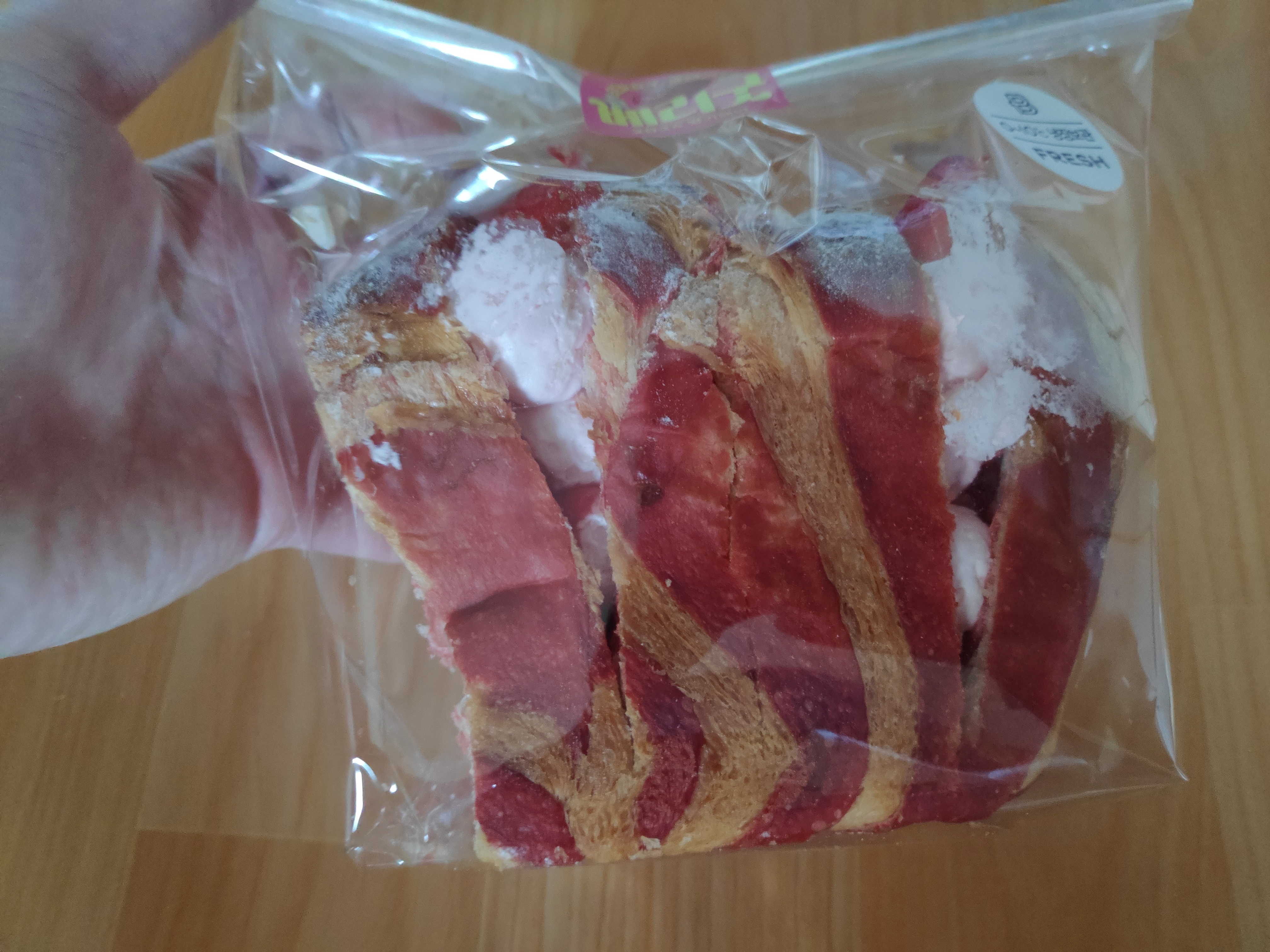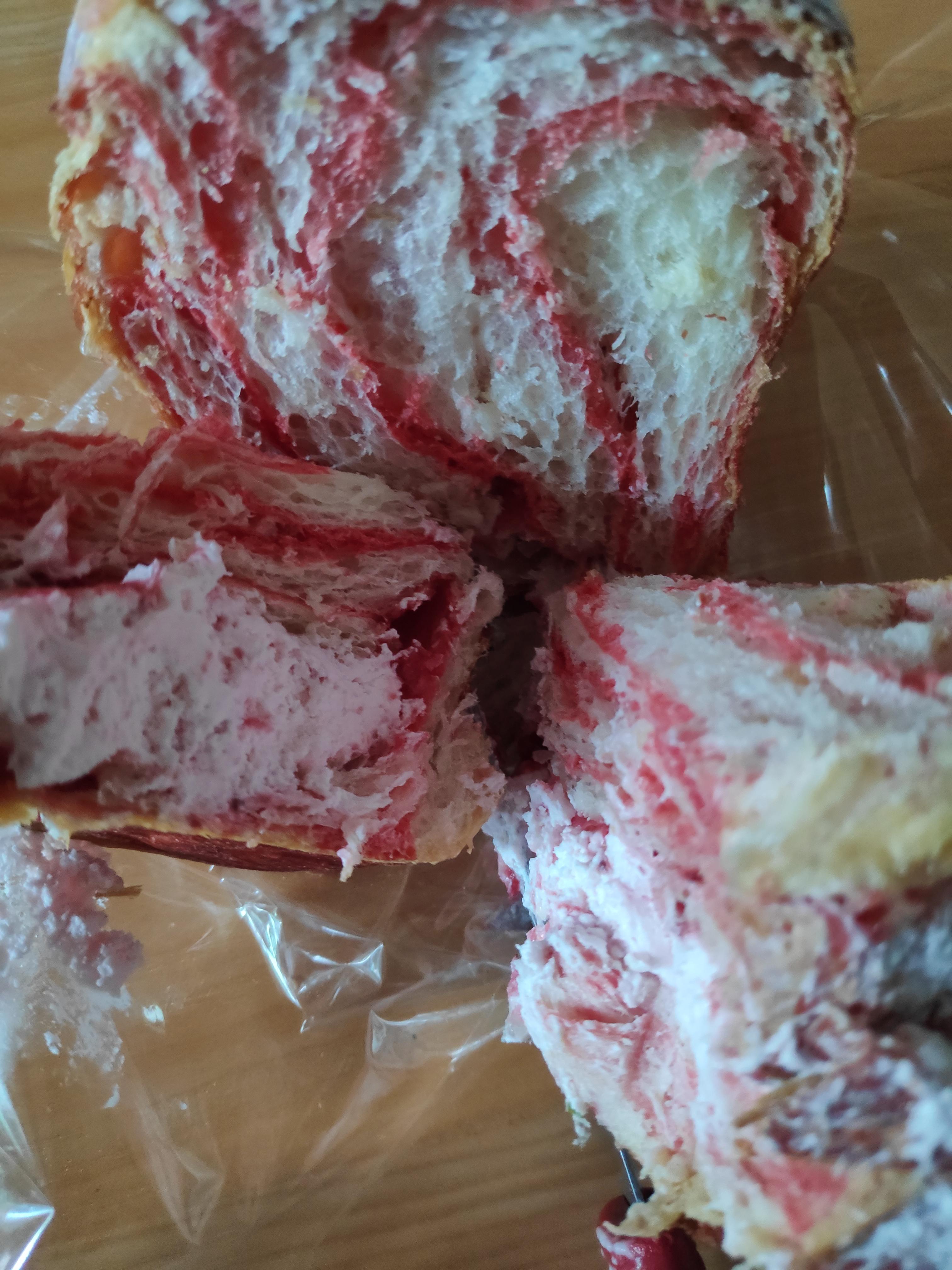 빵에 빨간색으로 나 있는 부분이 딸기맛이 났고