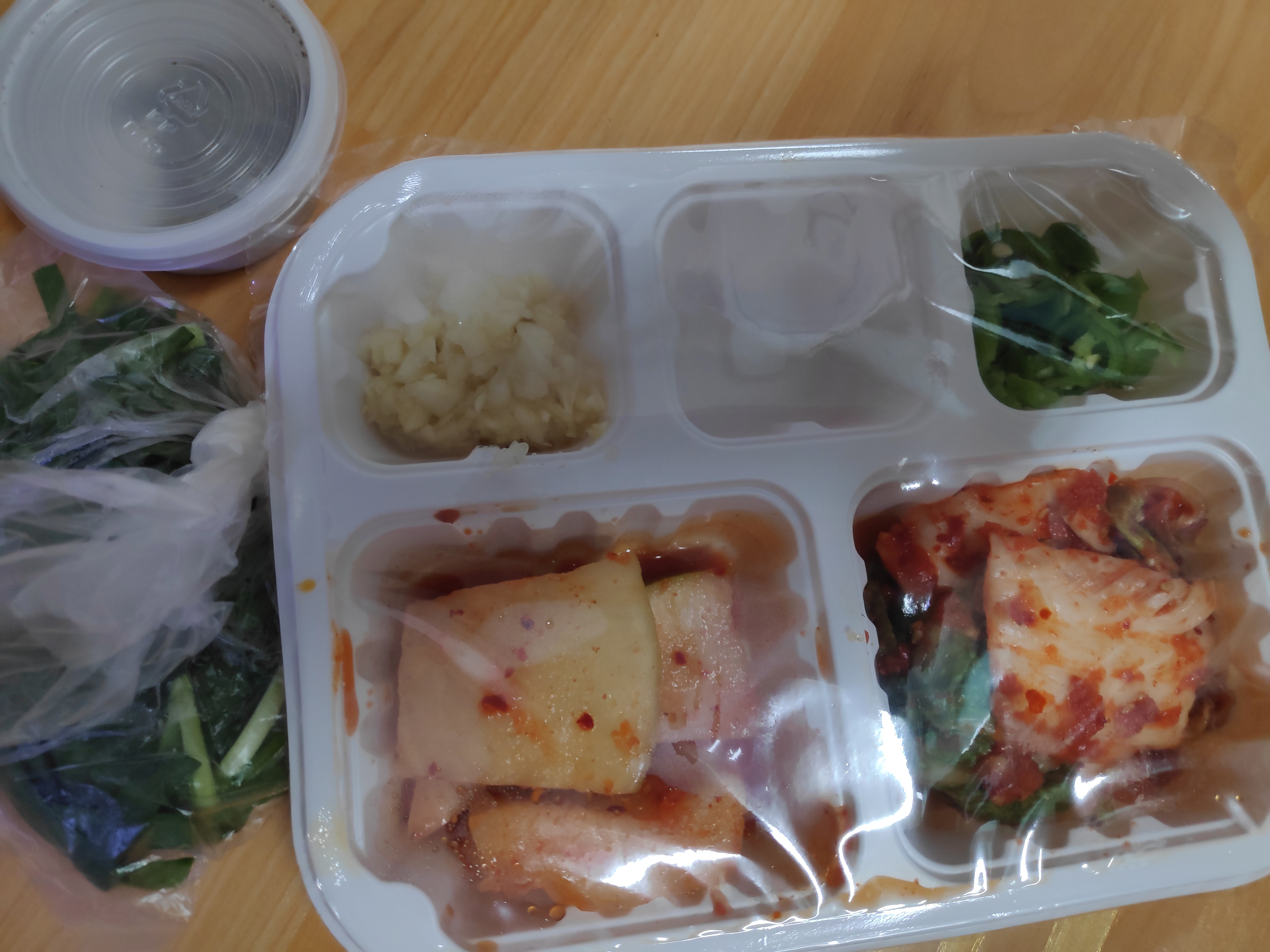 기본 반찬은 이미 포장되어 있는 걸 줬어요.