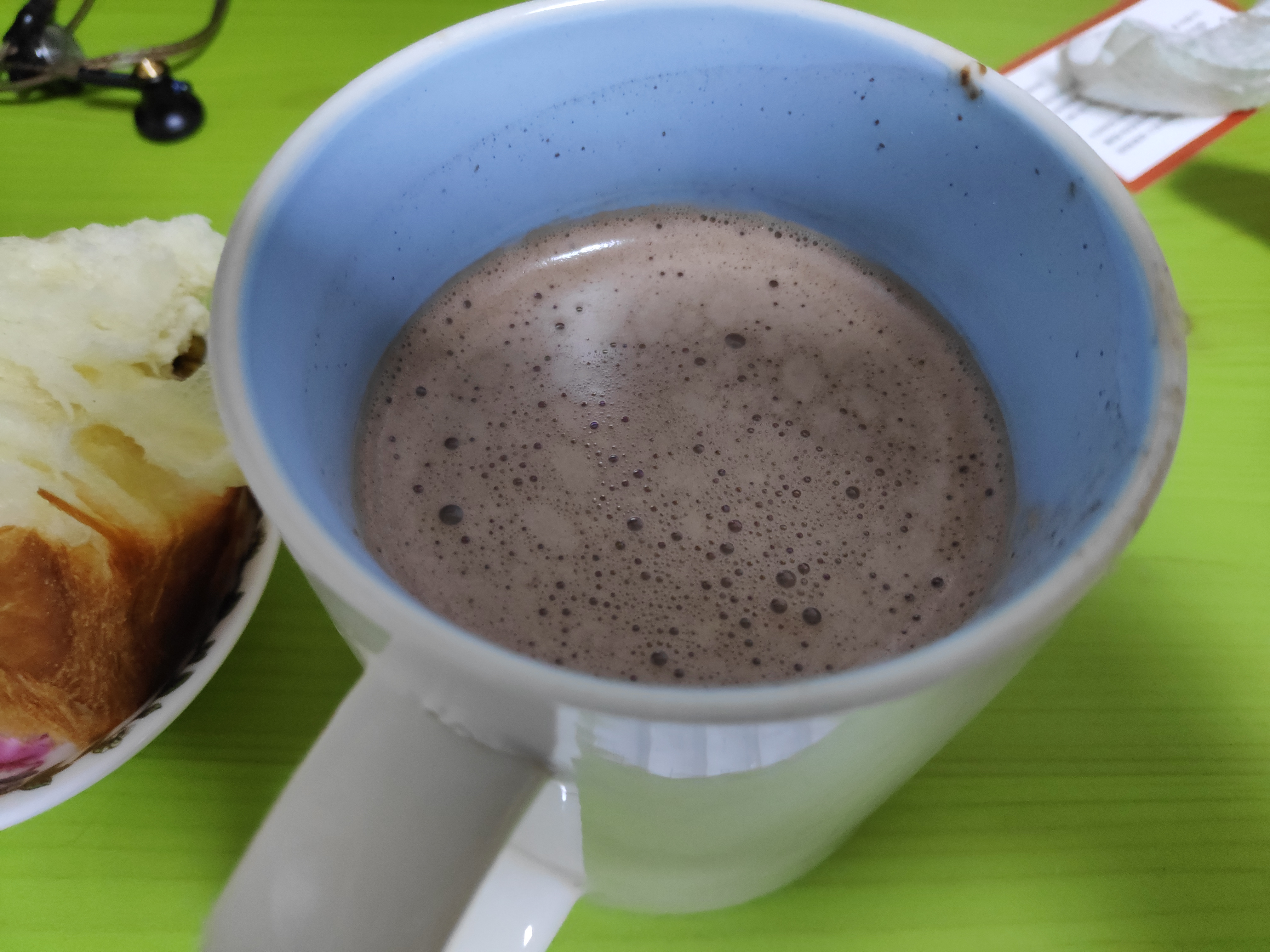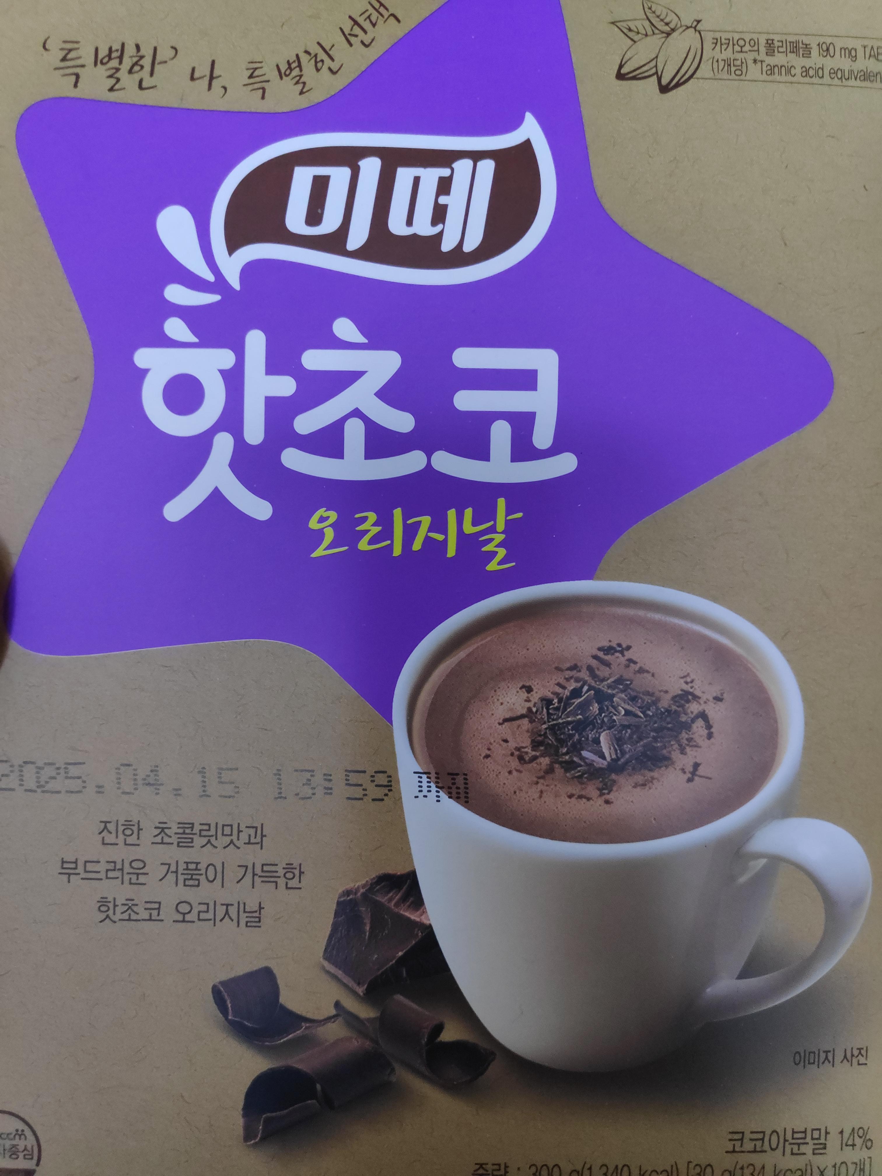 다시 숫가락으로 잘 저으면 따뜻한 핫초코가 됩니다.