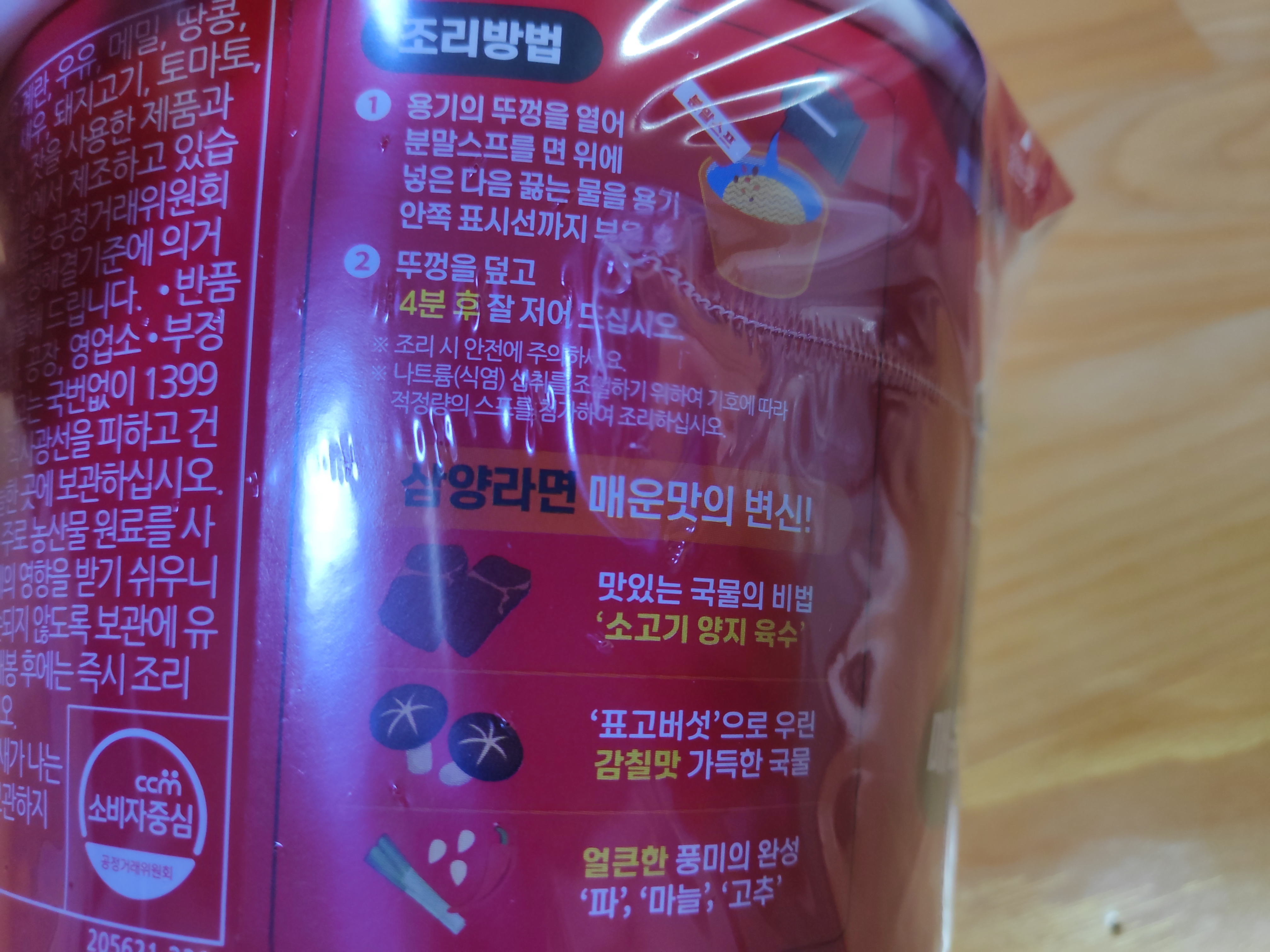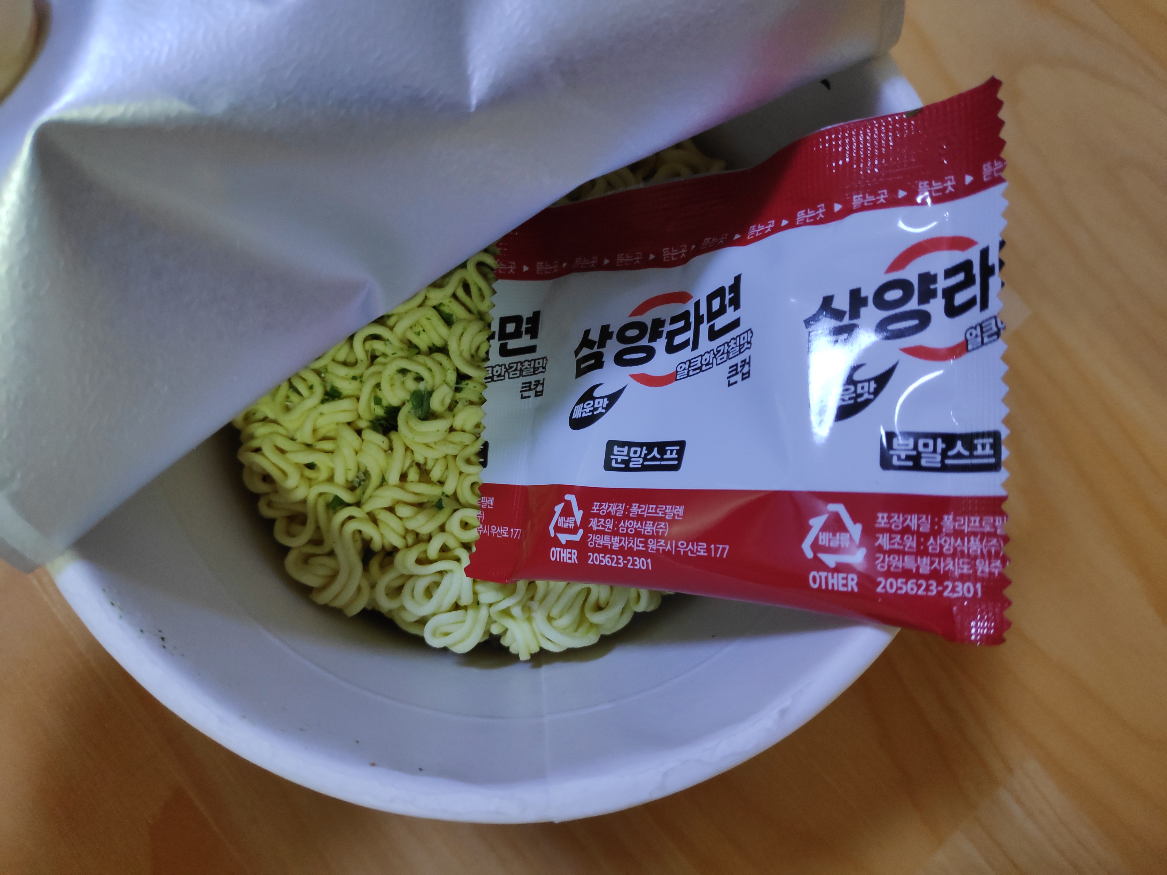 맛은 기존의 삼양라면 보다 훨씬 얼큰한 맛이에요.