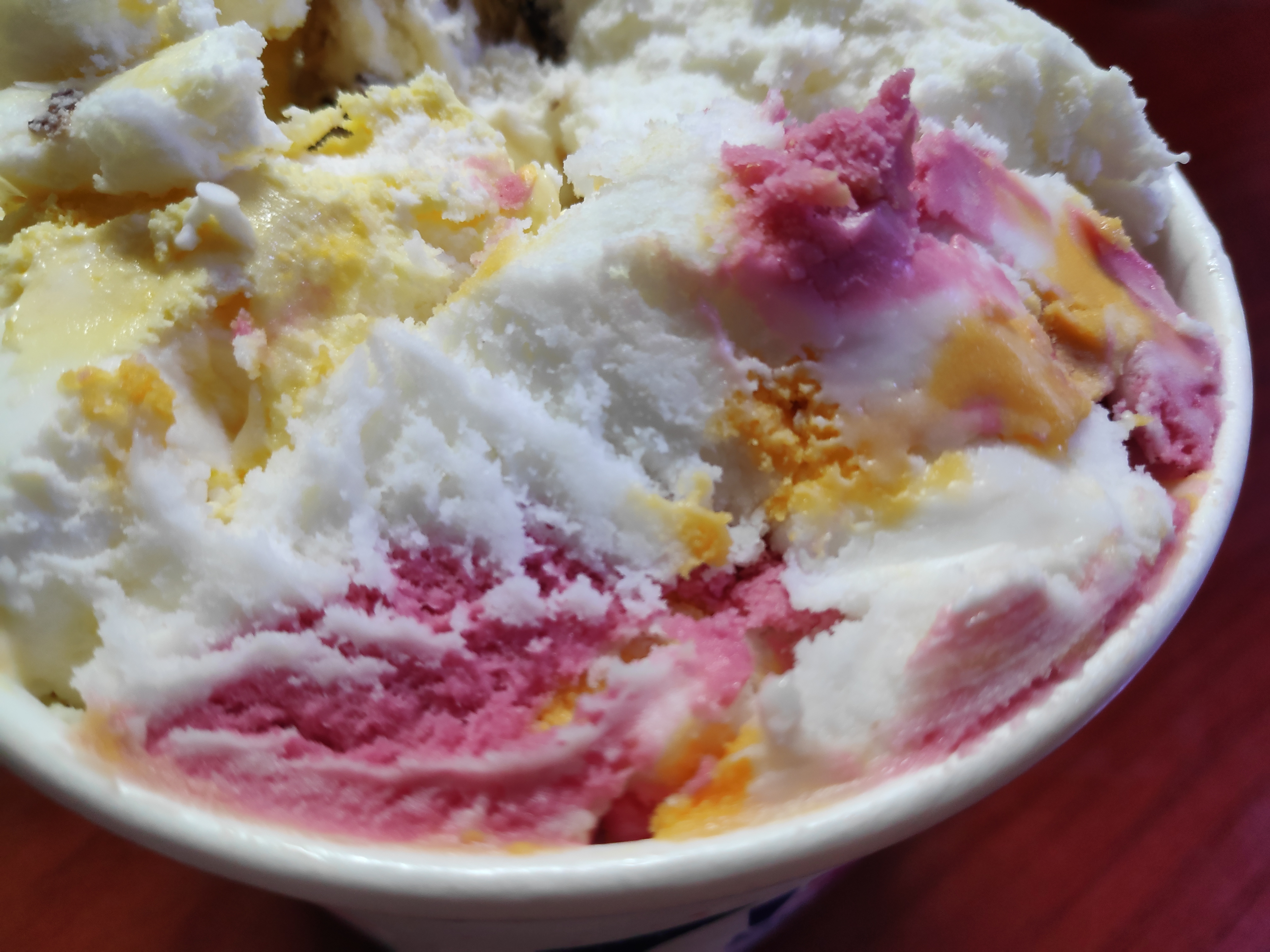 사과 맛이랑 애플민트 맛이 섞인 새콤한 맛의 아이스크림이에요.