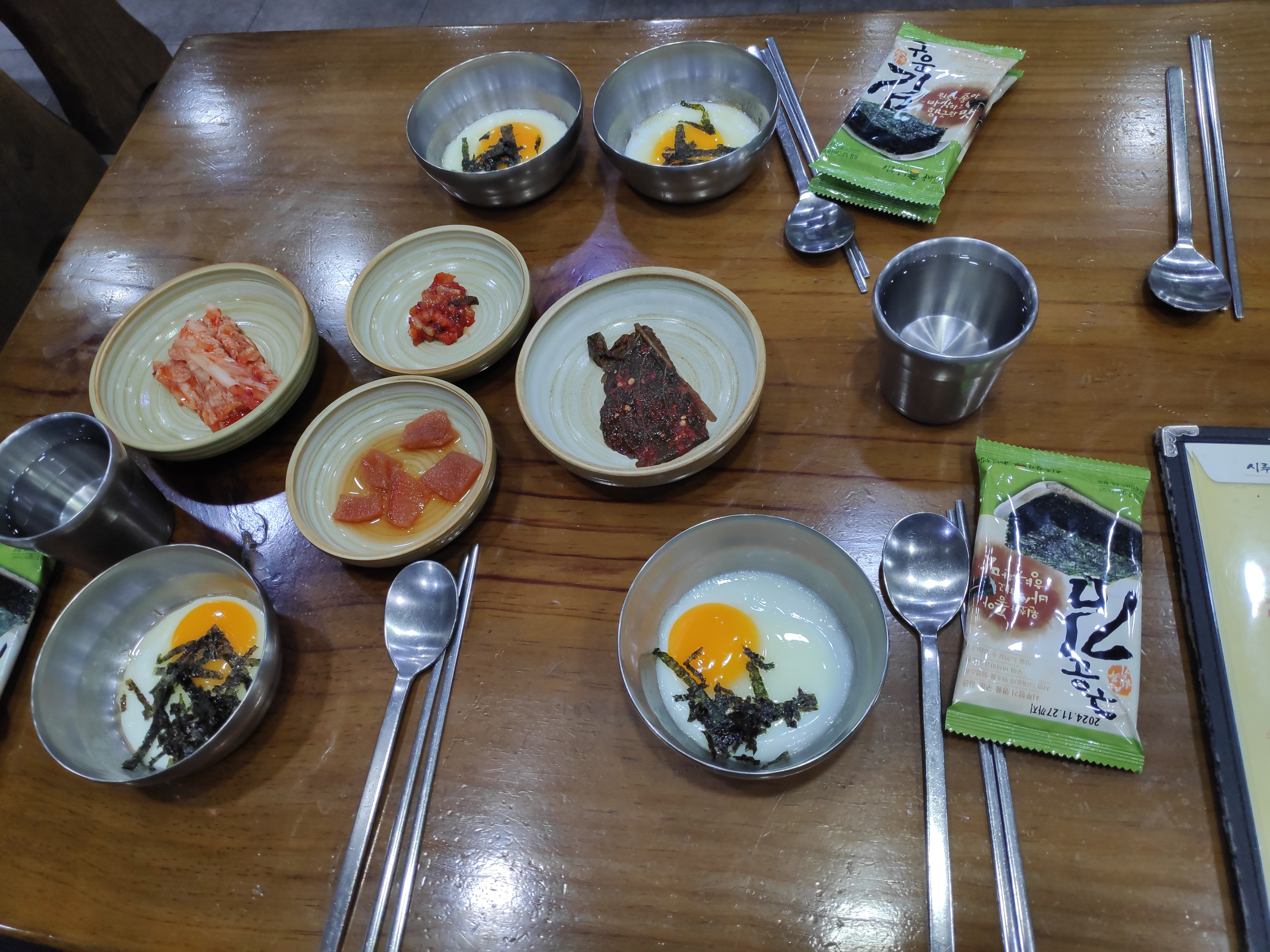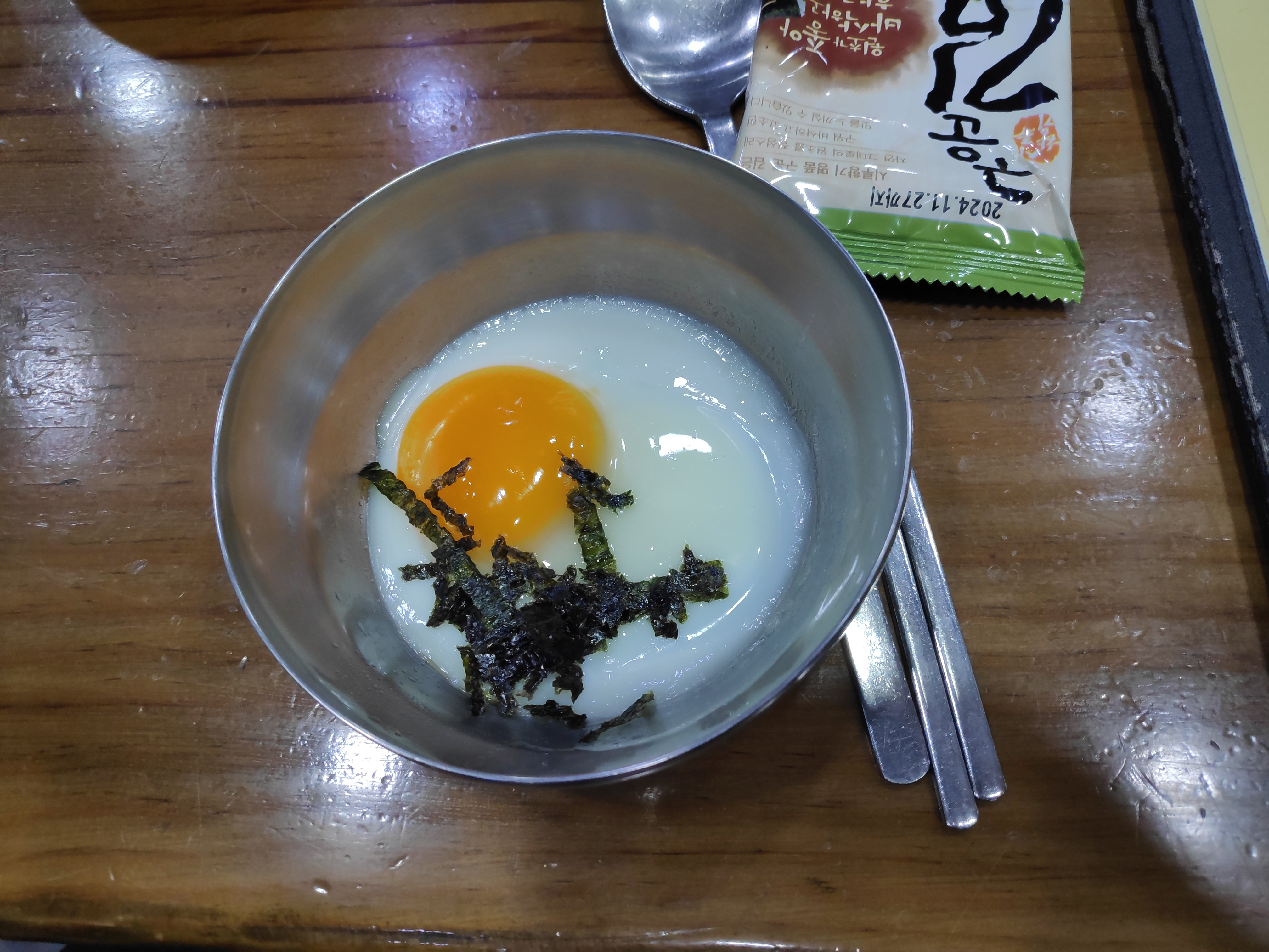 콩나물국밥이 나오면 밥을 조금 덜어서 계란후라이랑 같이 저어 먹으라고 했어요.