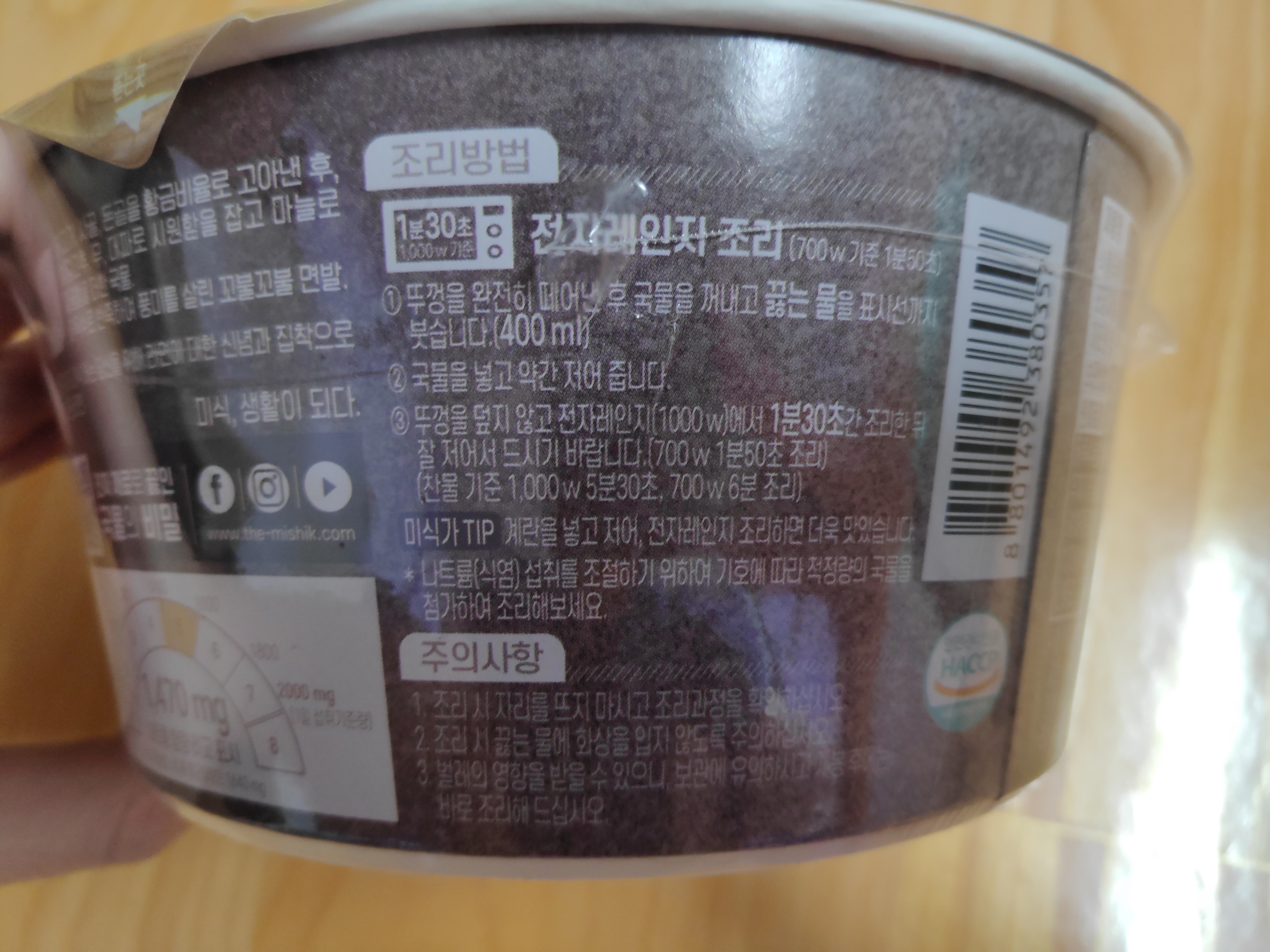 1분30초정도면 전자레인지에 돌려서 먹을수있군요.
