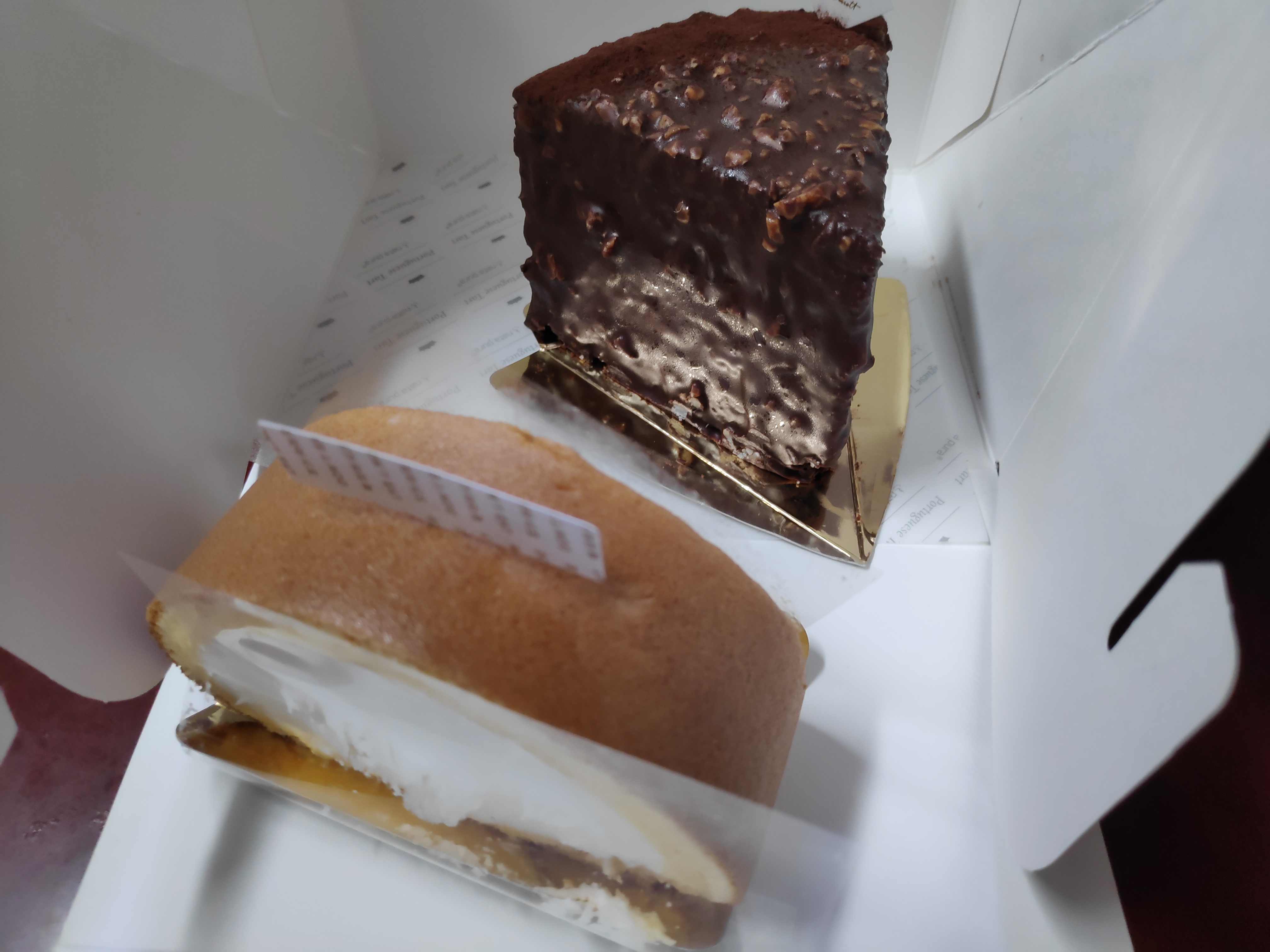 우유크림롤과 다크헤이즐넛 케이크입니다.