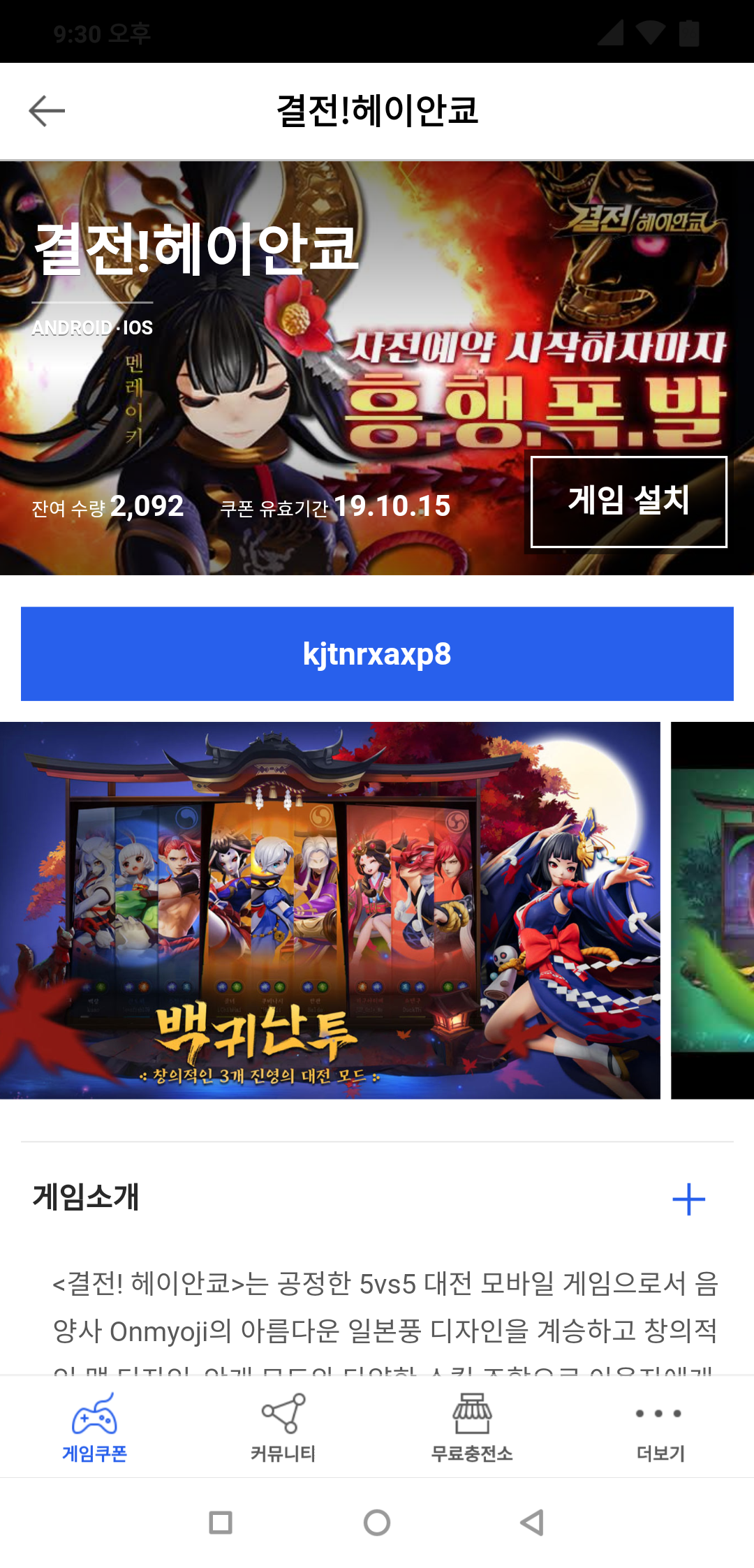 결전 헤이안쿄 사전등록쿠폰 드립니다.